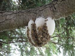 7~9月頃にかけて働きバチが増加し、巣はどんどん大きくなっていきます。巣は1年で使い捨てられ、同じ巣を翌年に使うことはありません。町ではキイロスズメバチがよくみられますが、攻撃性はかなり強く、巣を刺激した場合は集団で攻撃され死に至ることがあるため、むやみに刺激するのはやめましょう。